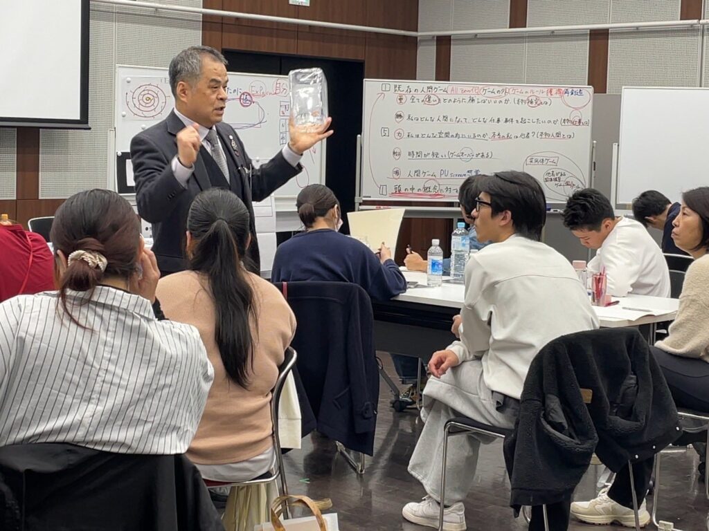午前中に実施した「Torusゲーム」では、参加者の皆様が、現代社会の構造そのものを体験しました。決められたルールの中で競い合ううちに、いつの間にか生まれる格差や限界。この構造的なもどかしさこそ、私たちが日々直面している現実――すなわち「人間ゲーム」の本質であることに気づかされたのではないでしょうか。